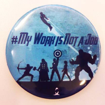 Em 2016, criei uma série de bottons e adesivos, misturando referências de cultura pop e trocadilhos com tecnologias para celebrar o Dia da Toalha, também conhecido como Dia do Orgulho Nerd. A iniciativa foi um grande sucesso, apoiando ações de Desenvolvimento Humano e Organizacional (DHO) e contribuindo para reduzir a rotatividade de funcionários na empresa.